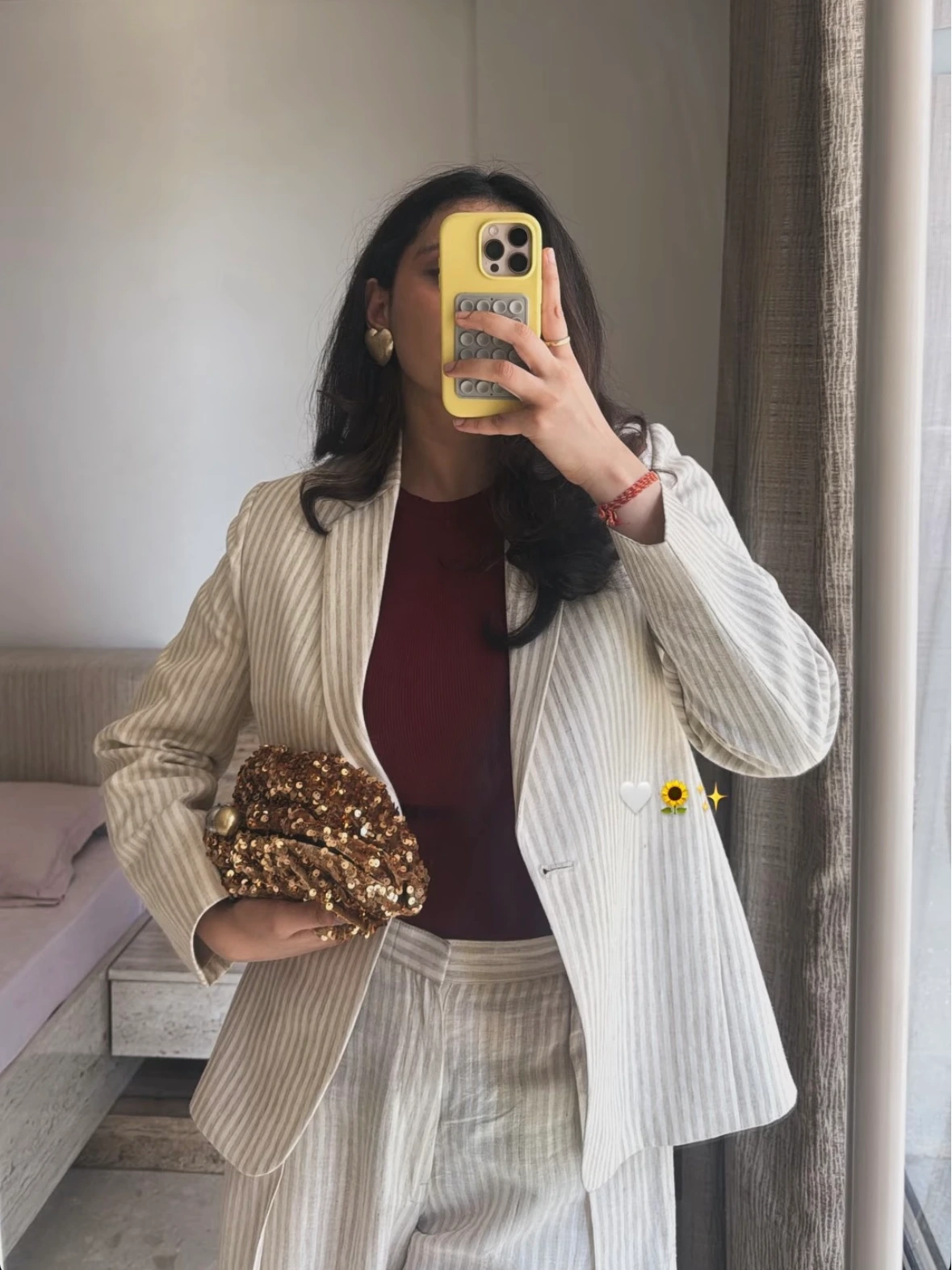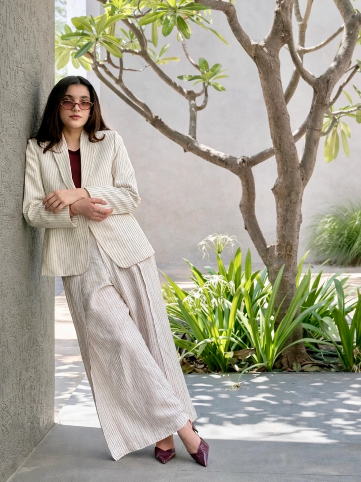 And the pants? The beautifully tailored pleated trousers truly pull the entire look together—structured, flattering, and endlessly stylish.