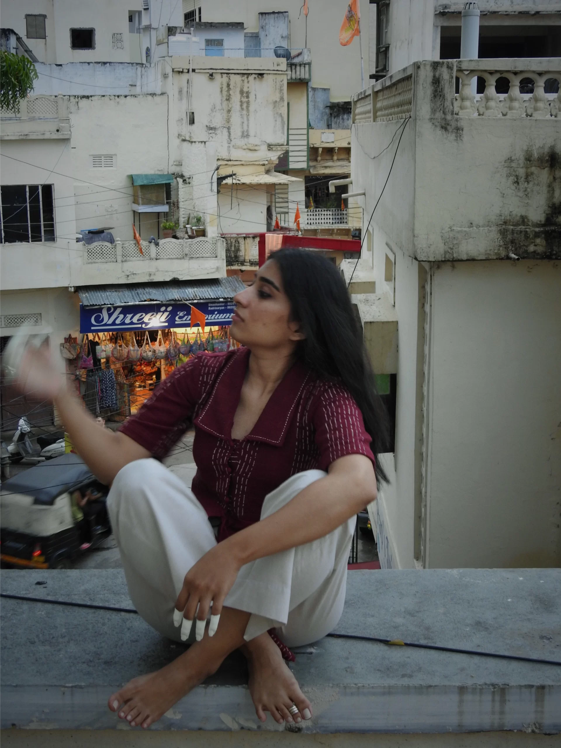 Crafted in pure zero count Khadi, this achkan is a modern silhouette inspired by power dressing. It is a versatile, comfortable, and timeless ensemble. The artisanal details like abstract stripe block print, bandhani, and minimal kantha stitch add more value. The piece is no less than an amalgamation of art, textile,s and contemporary fashion.
