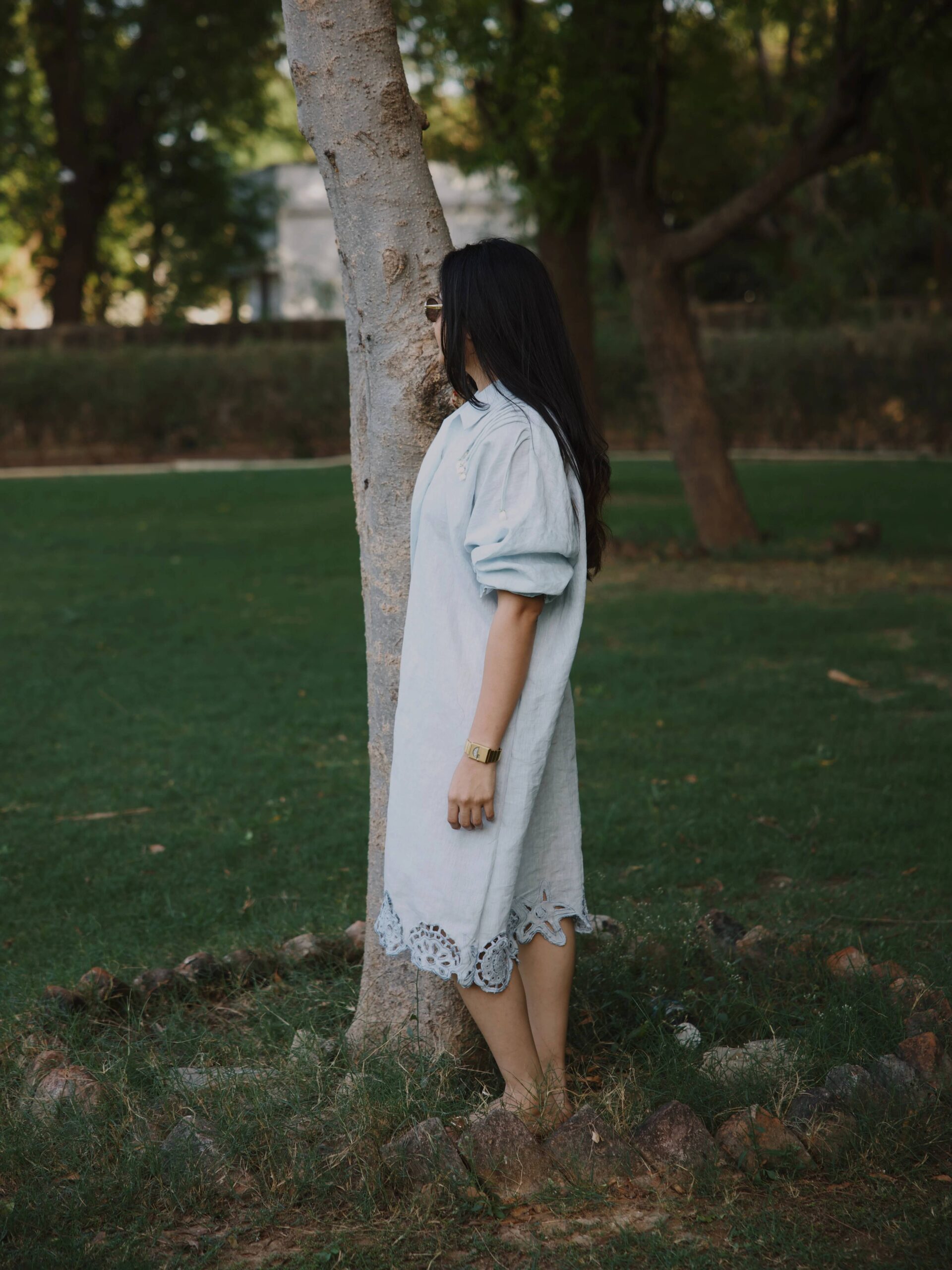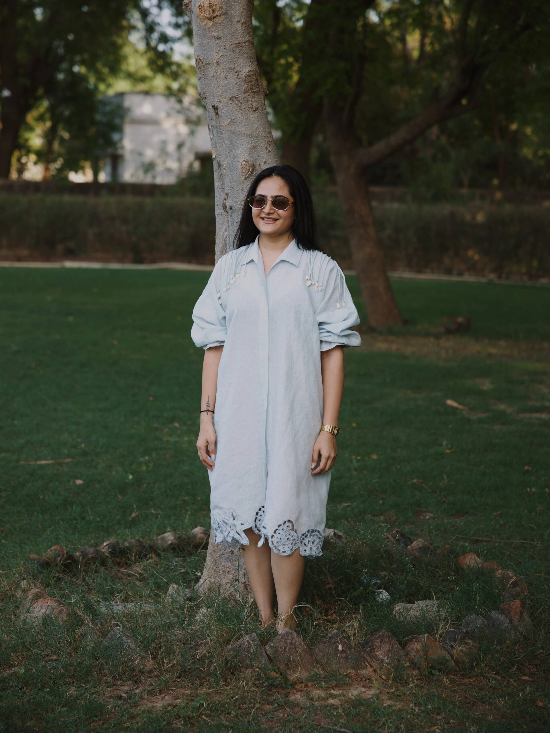 The Coastal Dusk Dress captures the calm and charm of seaside evenings in the most effortless way. Crafted in soft, lightweight linen in a serene light blue hue, it feels airy, breathable, and perfect for warm summer days.