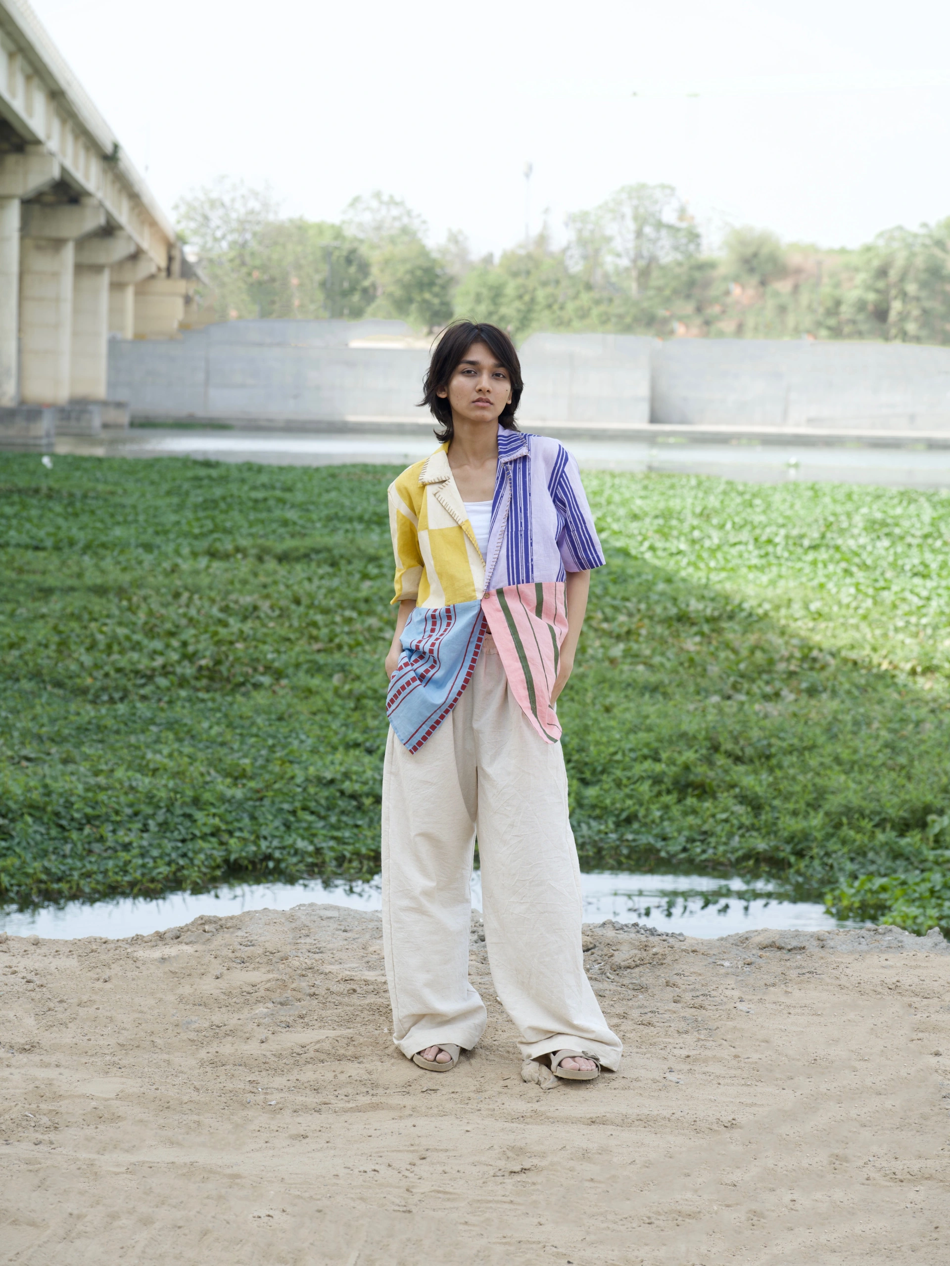 Musafir co-ord set crafted in pure khadi cotton exudes an effortless – chic look. The vibrant color palette,  prominent embroidery details, and artisanal block print make it a versatile ensemble for all seasons and body types.